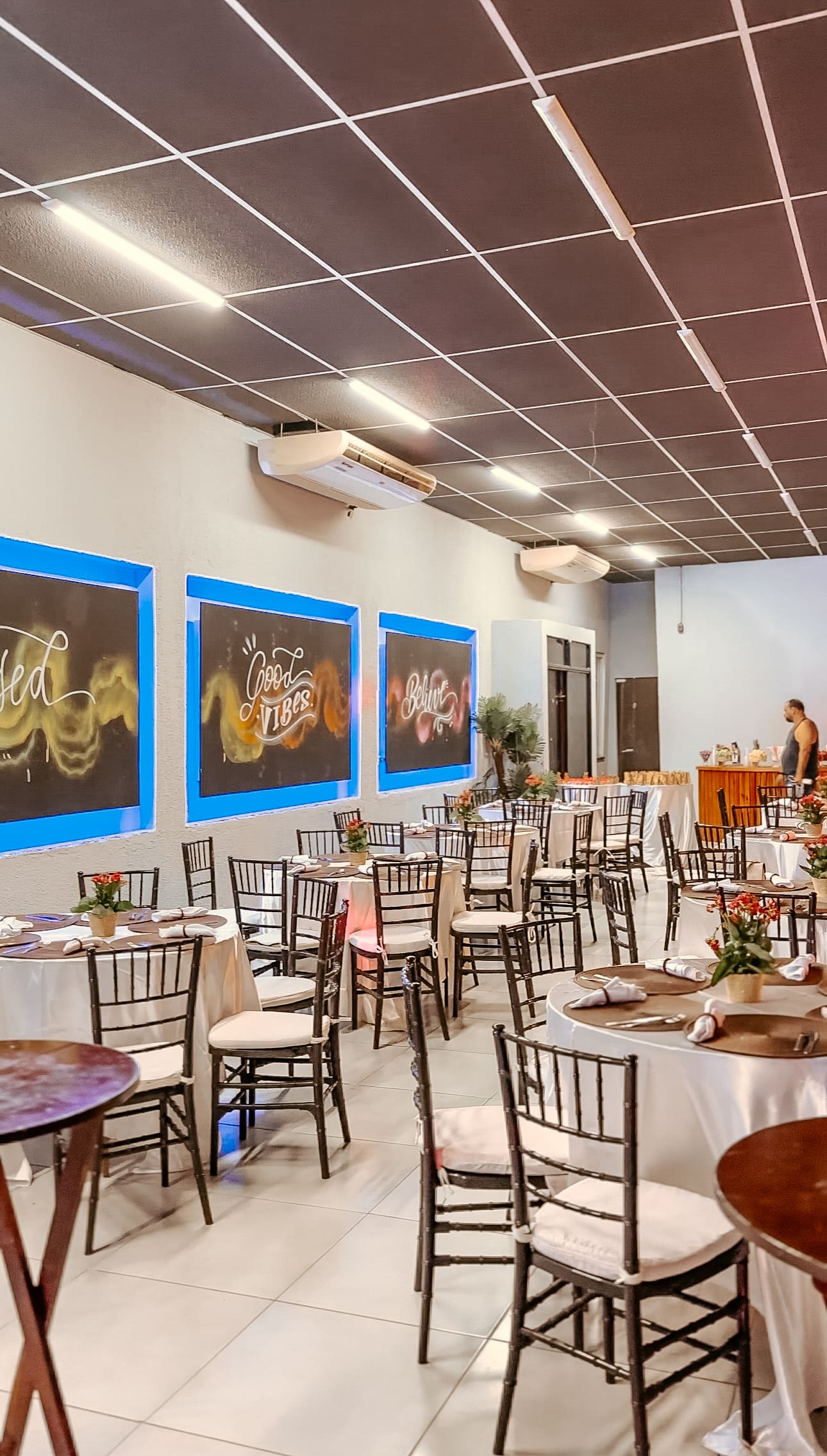 Nosso salão tem capacidade para acomodar confortavelmente mais de 150 pessoas.